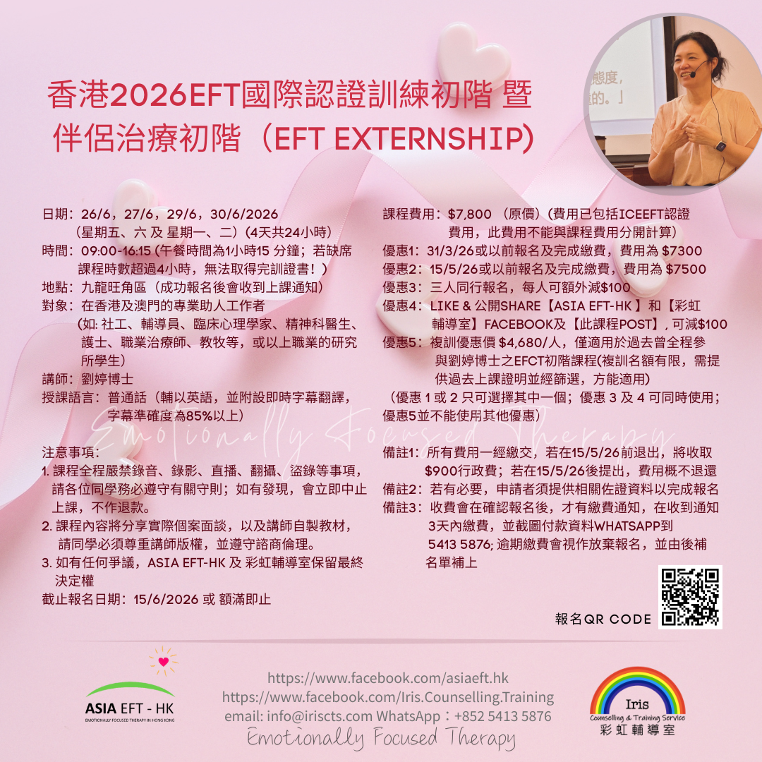 香港2026 EFT情緒取向治療國際認證訓練初階暨伴侶治療初階 (EFT Externship) |