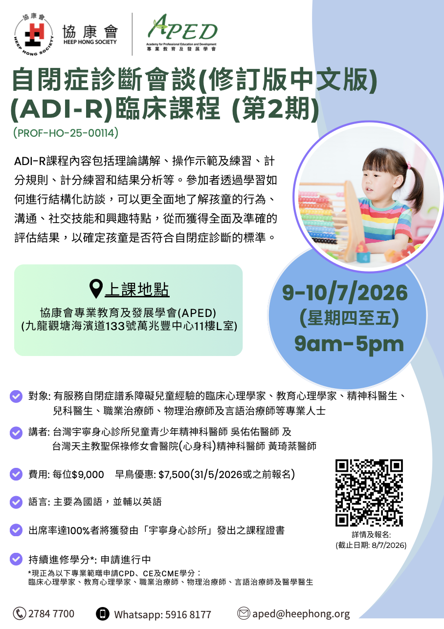 自閉症診斷會談(修訂版中文版)(ADI-R)臨床課程(第2期)