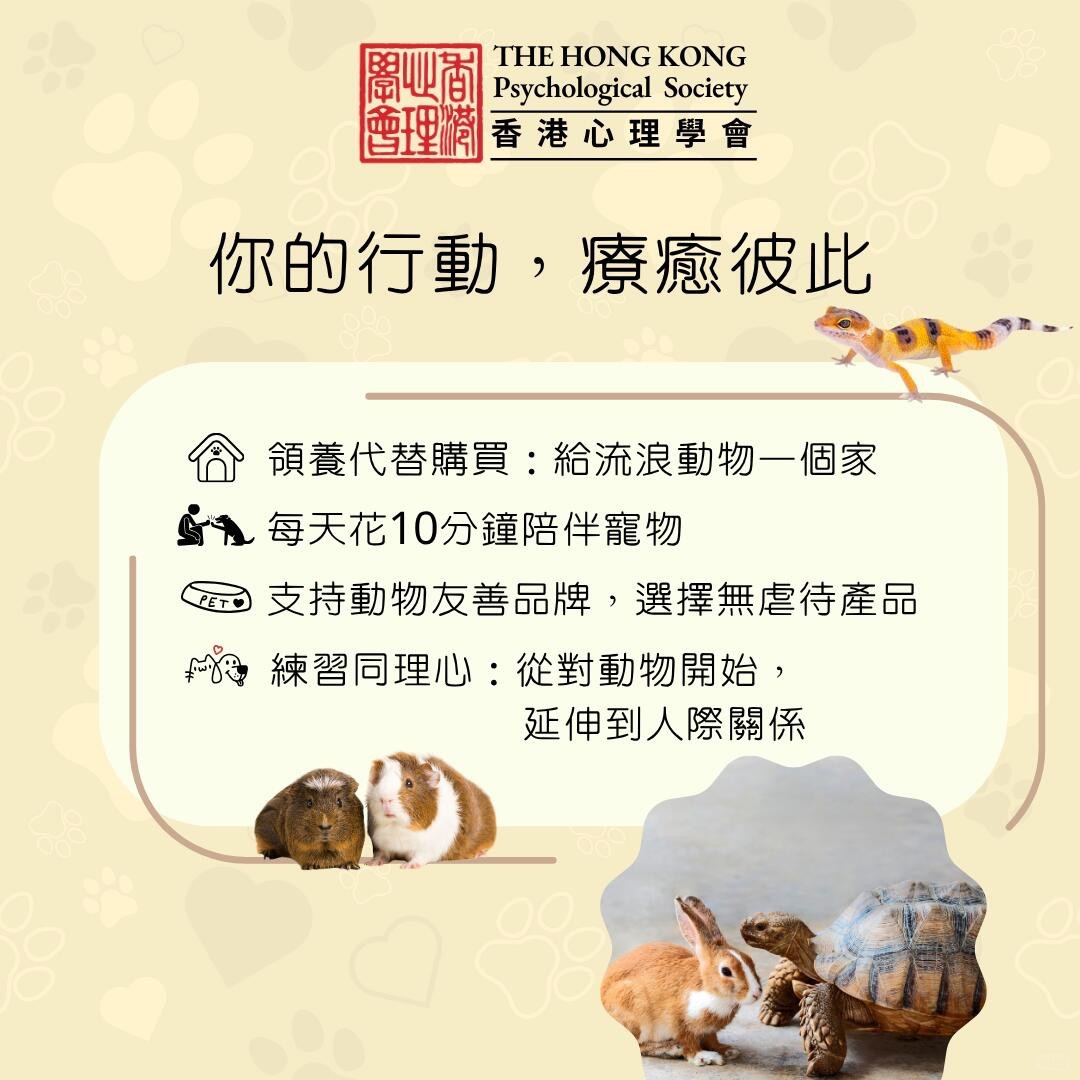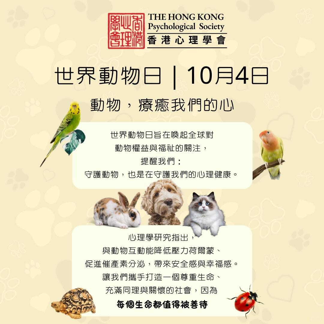 香港心理學會 #世界動物日 #心理健康 #動物療癒 #與動物共生 #WorldAnimalDay #MentalHealthMatters #AnimalsHeal #HKPS