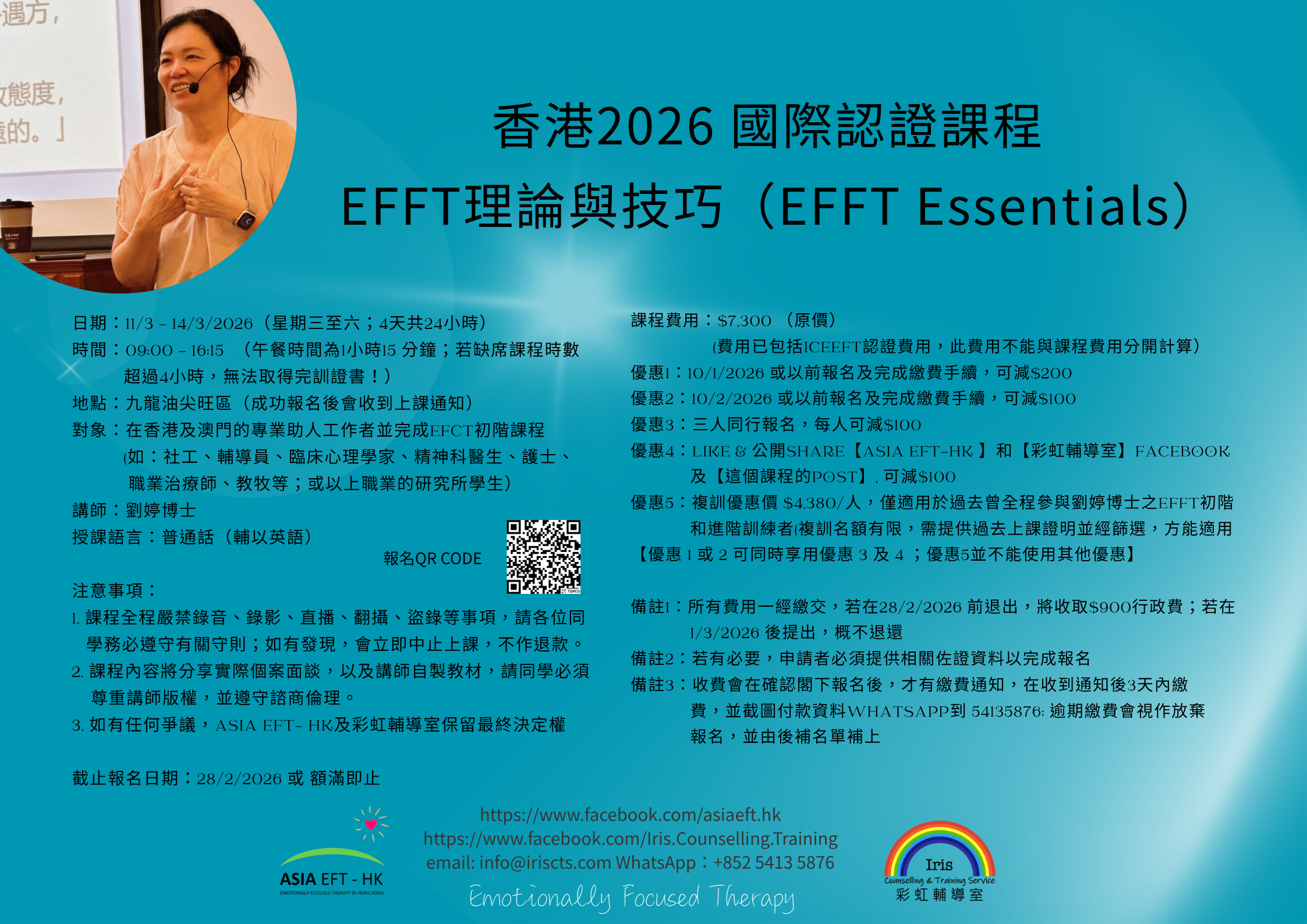 香港 2026 國際認證課程 - EFFT理論與技巧 |